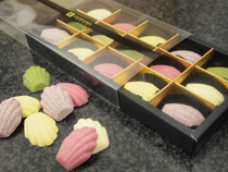 今年のバレンタインのおすすめは、当店のロゴマークでもあるマドレーヌ型の、5色の色鮮やかなショコラの詰合せ「カラフルマドレーヌ」です。