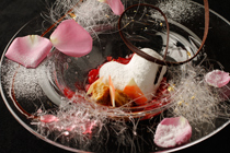 心温まるシェフ渾身の料理はもちろんのこと、シェフ・パティシエのヴァレンタインらしいハートフルなデザートは幸せを与えてくれます。秘密のミックススパイスと、清涼感あるミントを絡めた温かいチョコレートスープは大人の至極の時間。。。